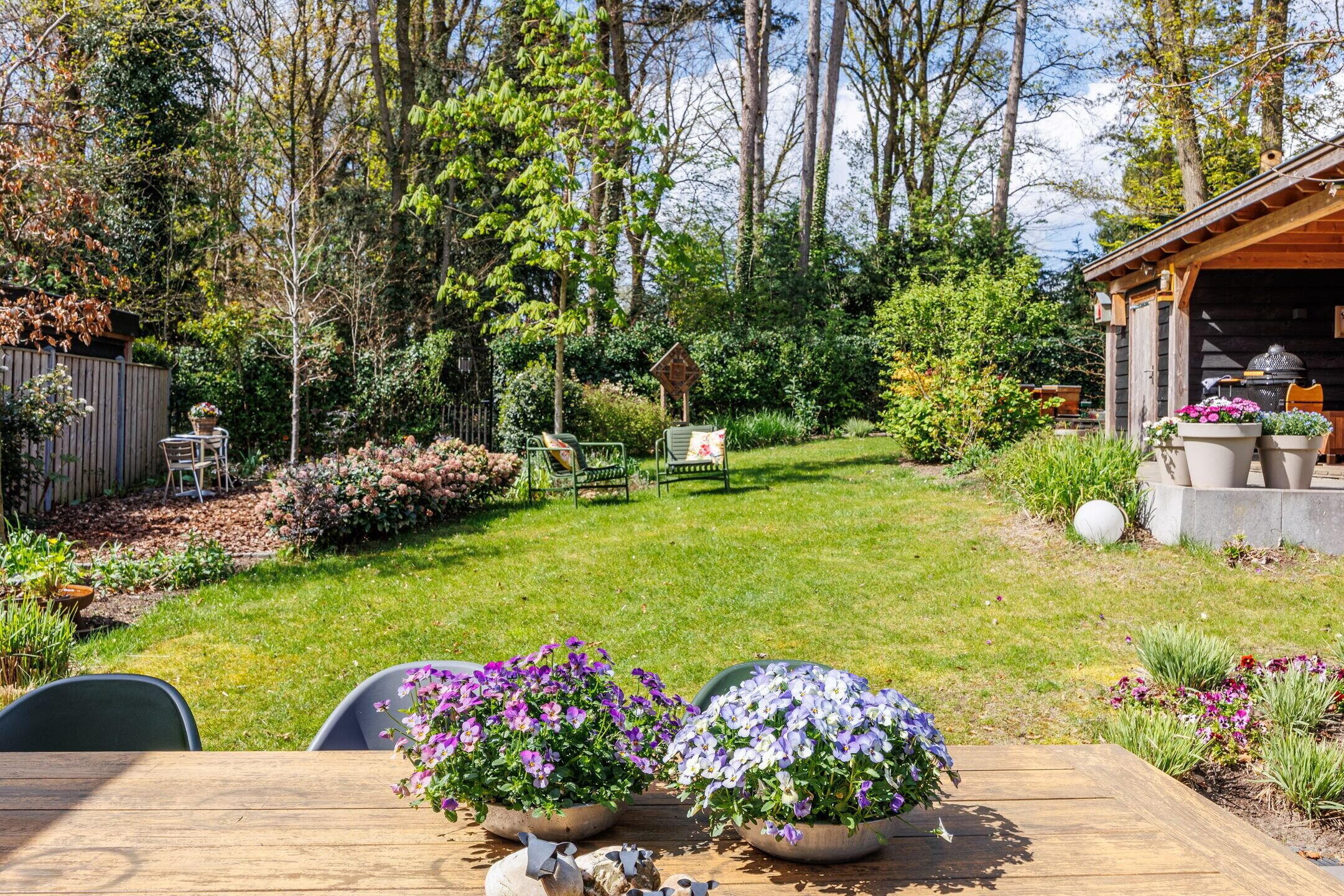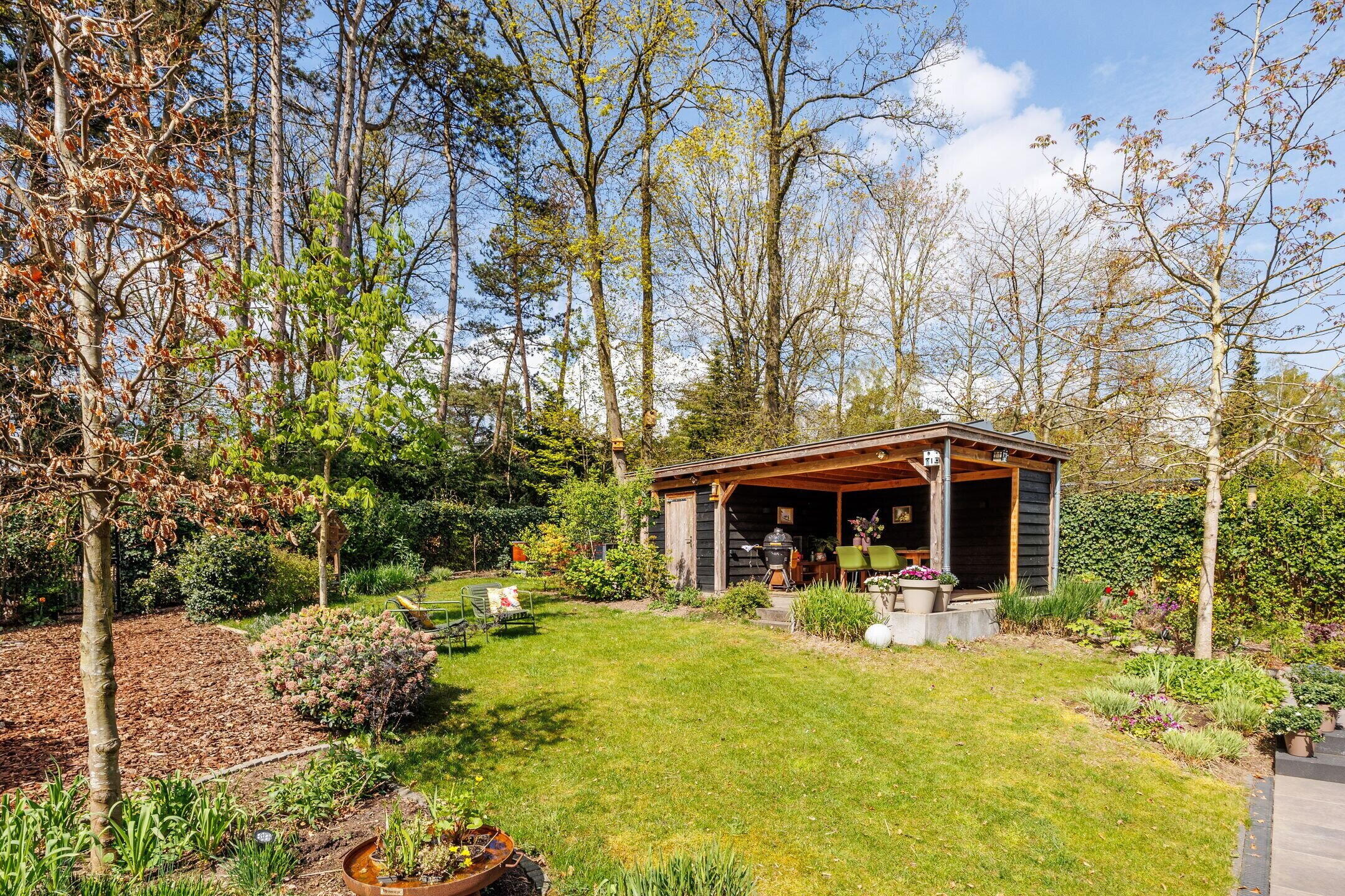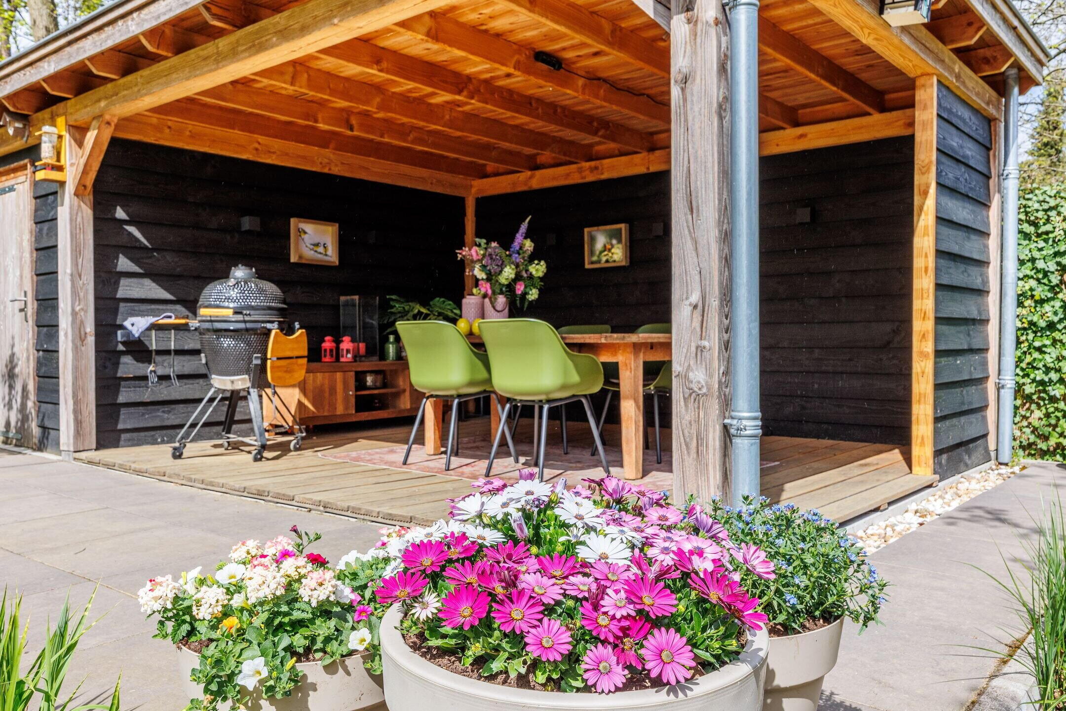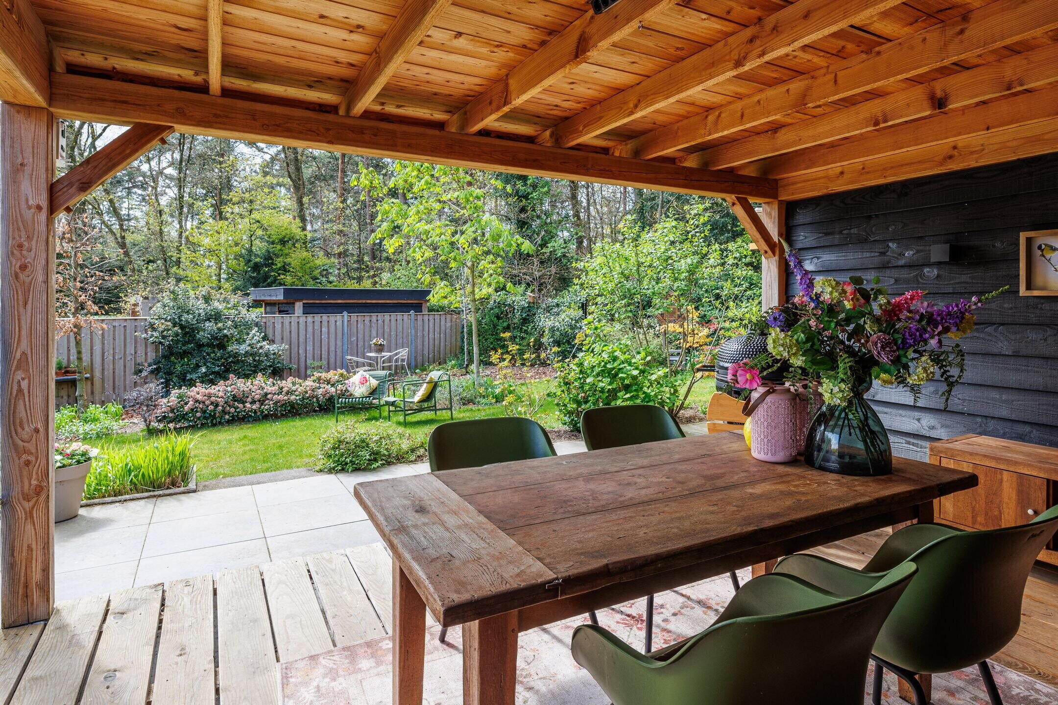 Hier ervaar je het buitenleven op z’n best. De zon draait gedurende de gehele dag de tuin in op verschillende plekken, waardoor dit dé plek is om na een lange dag nog heerlijk te genieten. Onder de prachtige veranda is het het hele jaar door goed vertoeven: of je nu uitgebreid wilt barbecueën in de zomer of gezellig wilt borrelen met vrienden en familie terwijl de zon langzaam ondergaat tussen de bomen. Aansluitend bevindt zich een praktische berging, perfect voor het netjes opbergen van tuingereedschap en fietsen. Vanuit de tuin loop je zó de natuur in, een unieke luxe die je elke dag opnieuw zult waarderen.