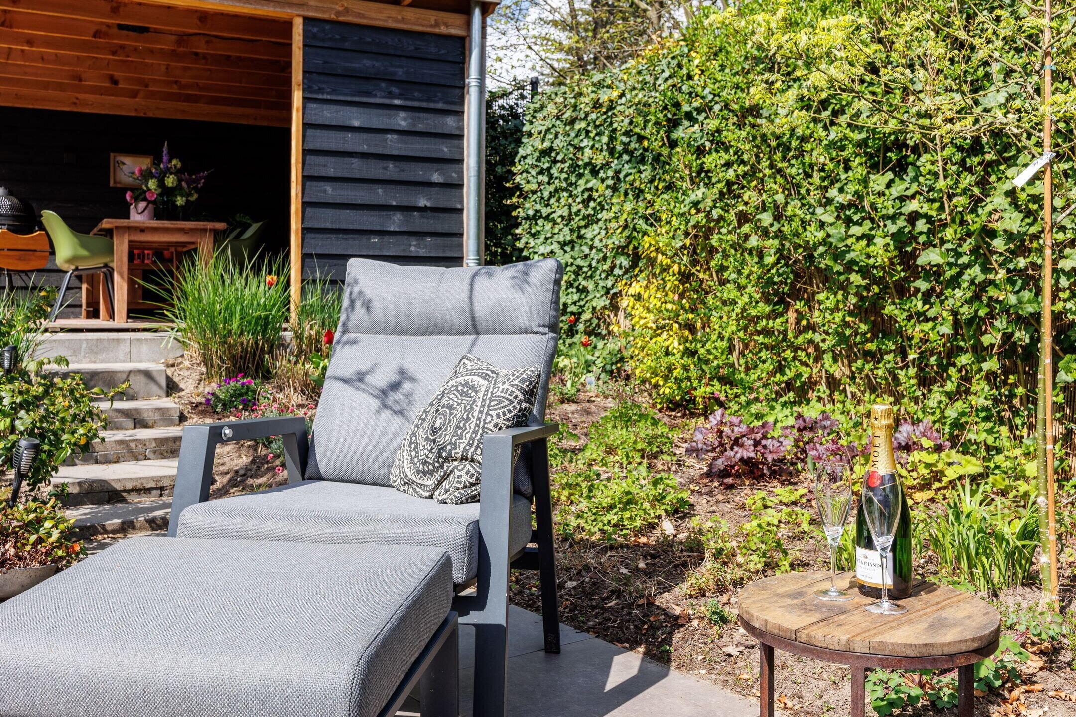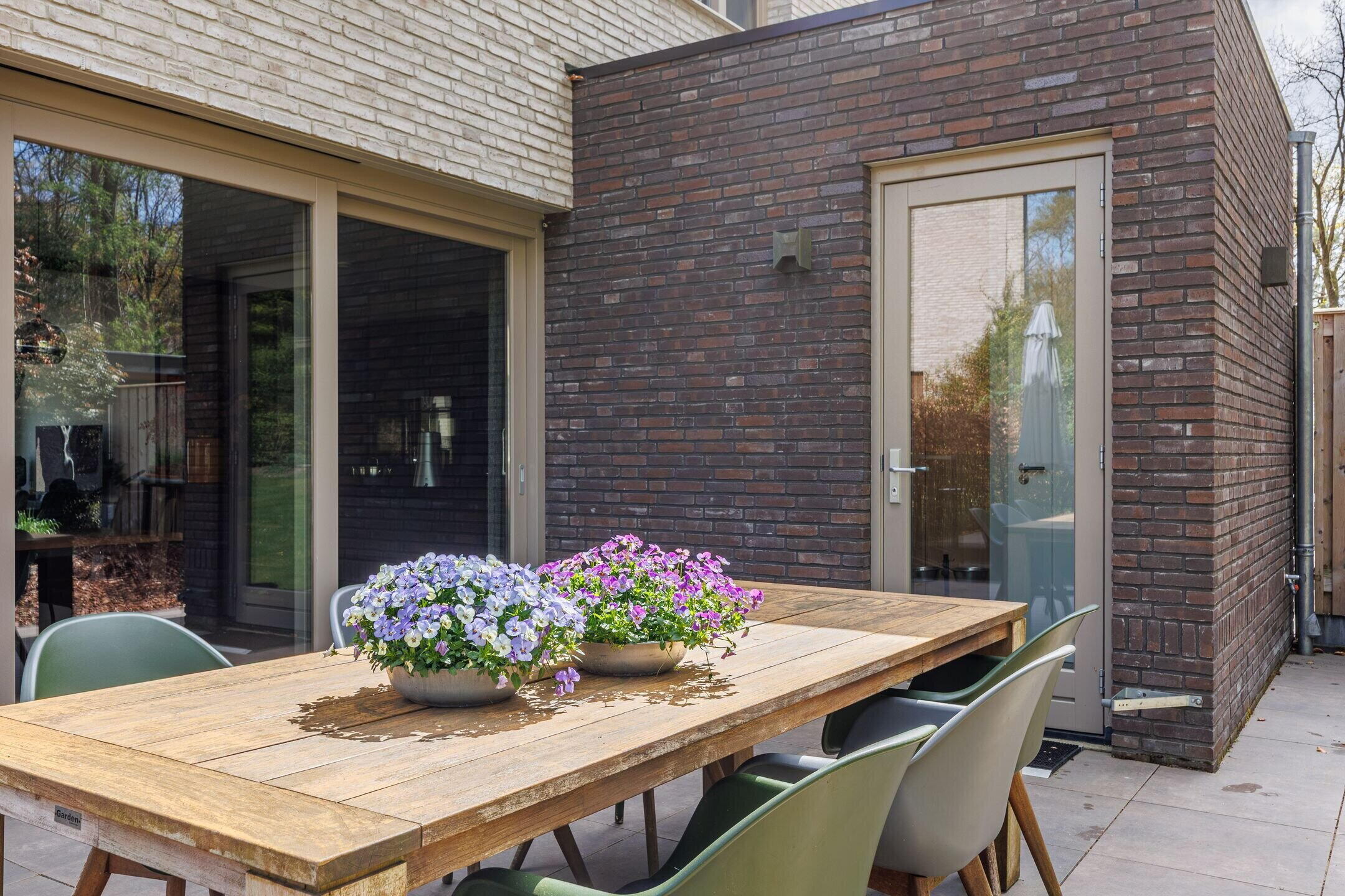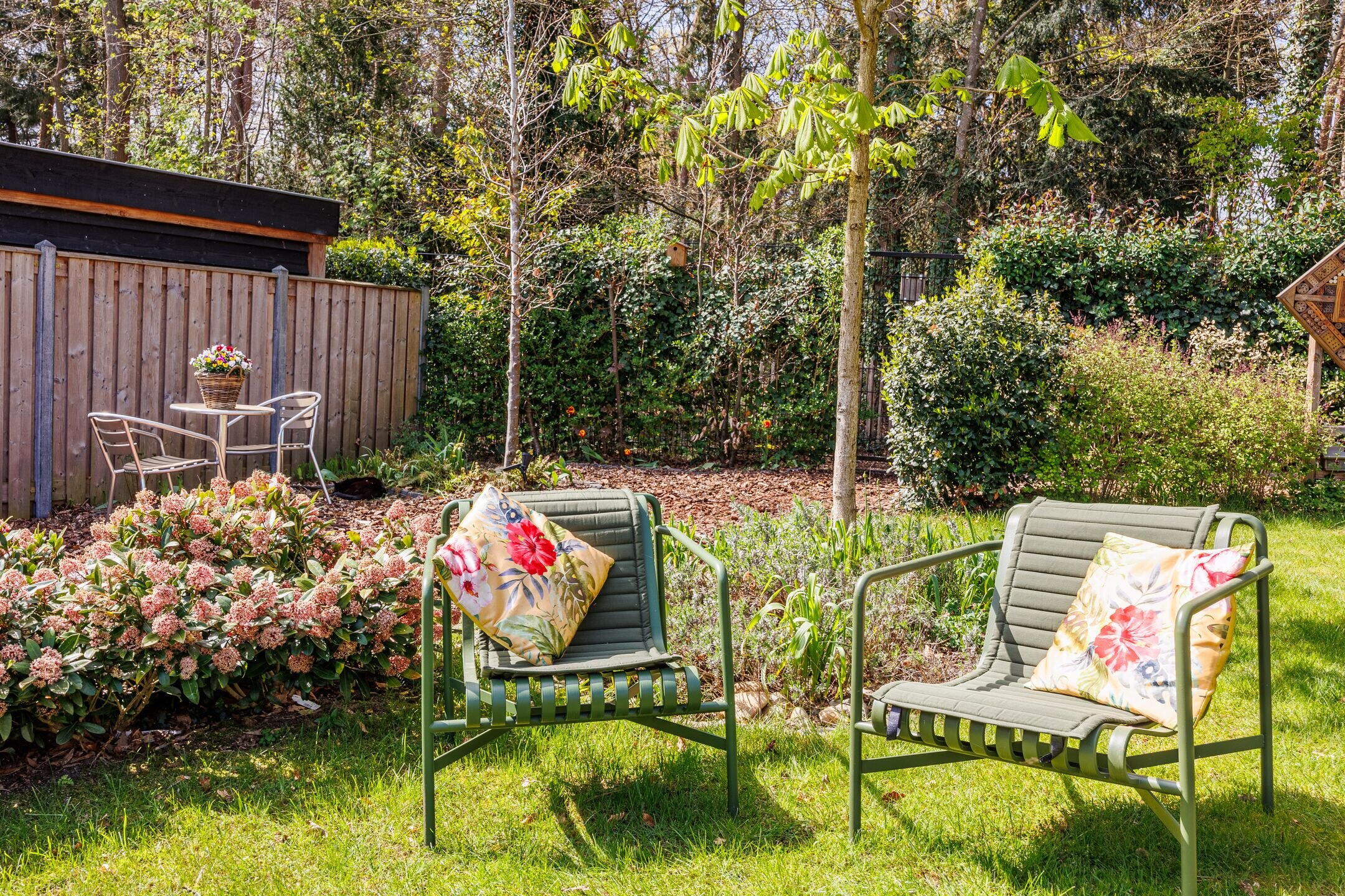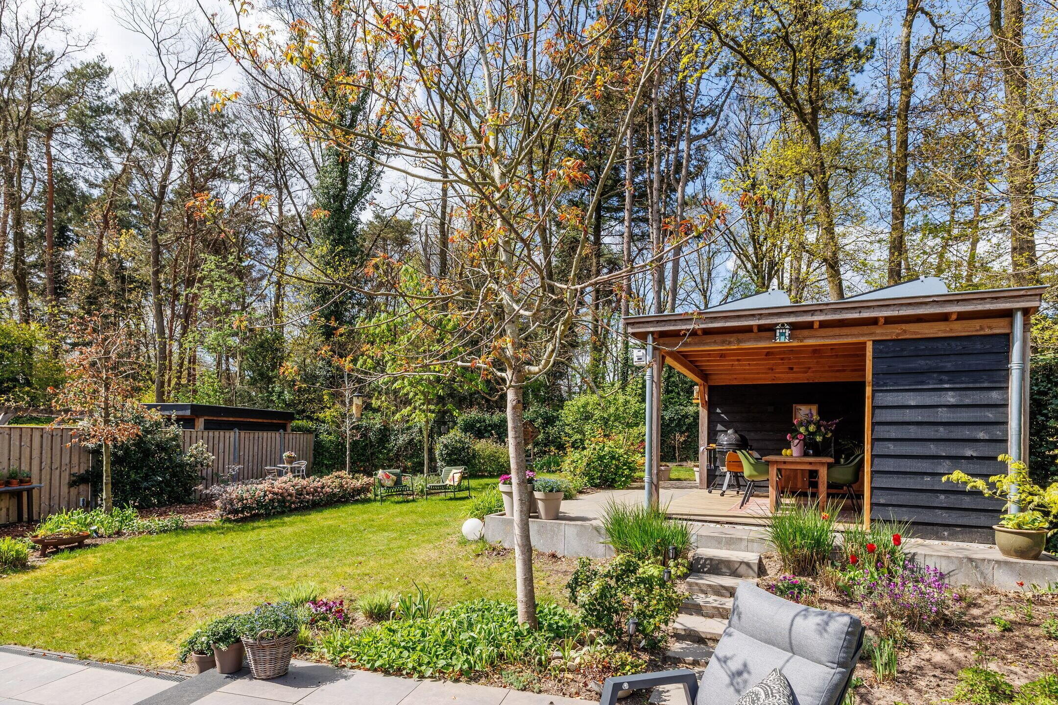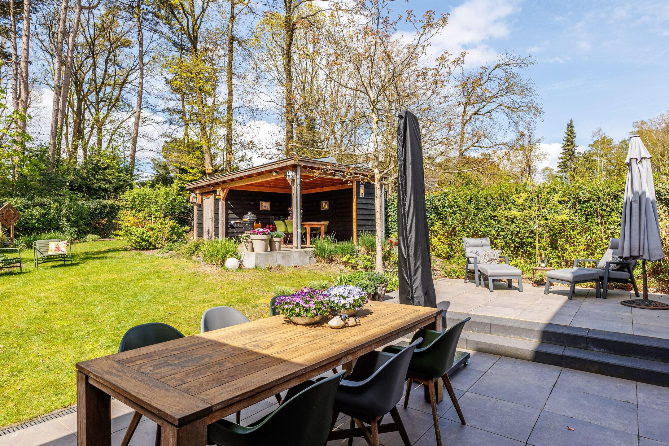 Hier ervaar je het buitenleven op z’n best. De zon draait gedurende de gehele dag de tuin in op verschillende plekken, waardoor dit dé plek is om na een lange dag nog heerlijk te genieten. Onder de prachtige veranda is het het hele jaar door goed vertoeven: of je nu uitgebreid wilt barbecueën in de zomer of gezellig wilt borrelen met vrienden en familie terwijl de zon langzaam ondergaat tussen de bomen. Aansluitend bevindt zich een praktische berging, perfect voor het netjes opbergen van tuingereedschap en fietsen. Vanuit de tuin loop je zó de natuur in, een unieke luxe die je elke dag opnieuw zult waarderen.