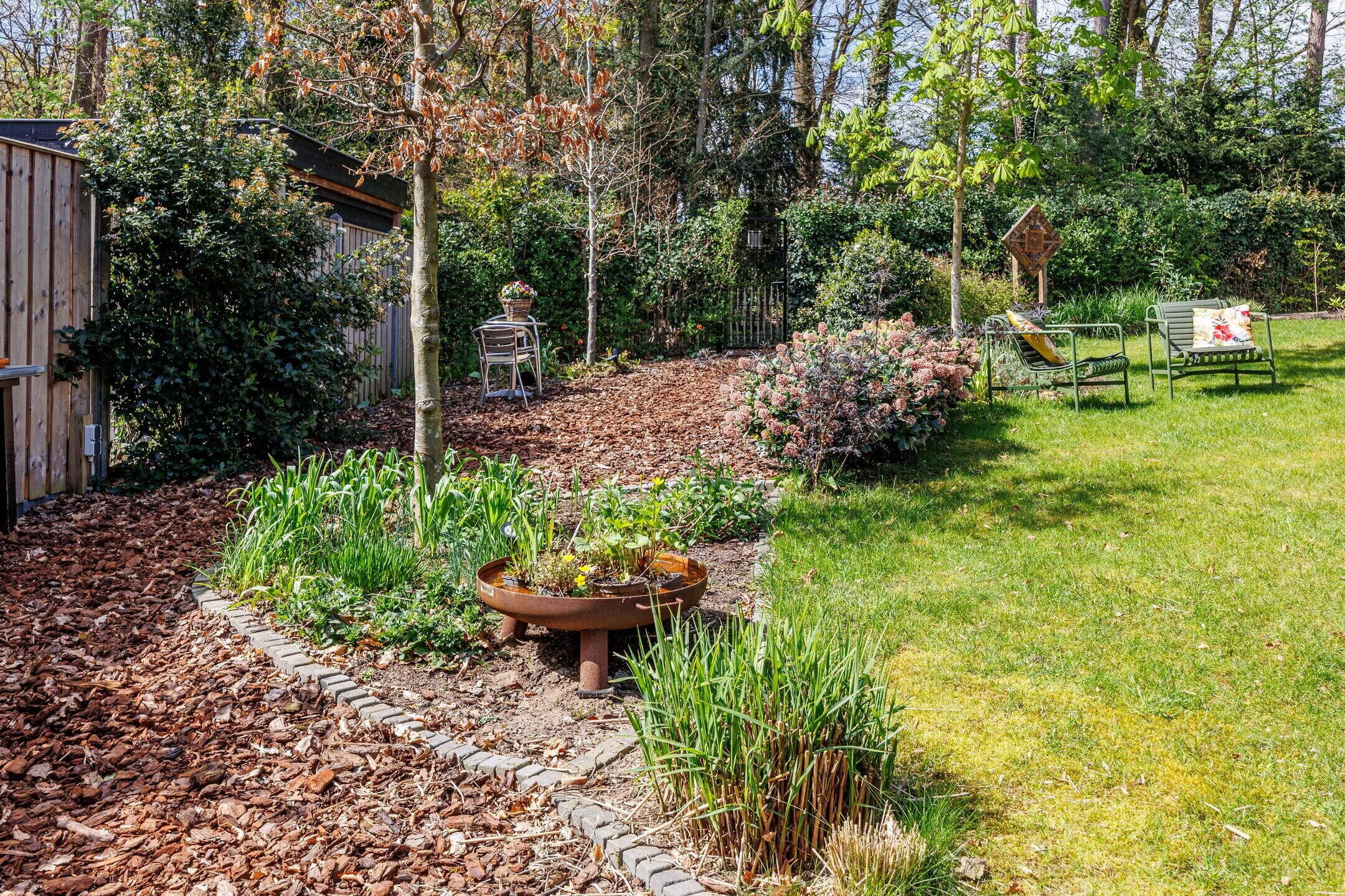 De fraai aangelegde tuin tegen de Leersumse berg op, is op het noordwesten die naadloos overloopt in het omliggende bos.