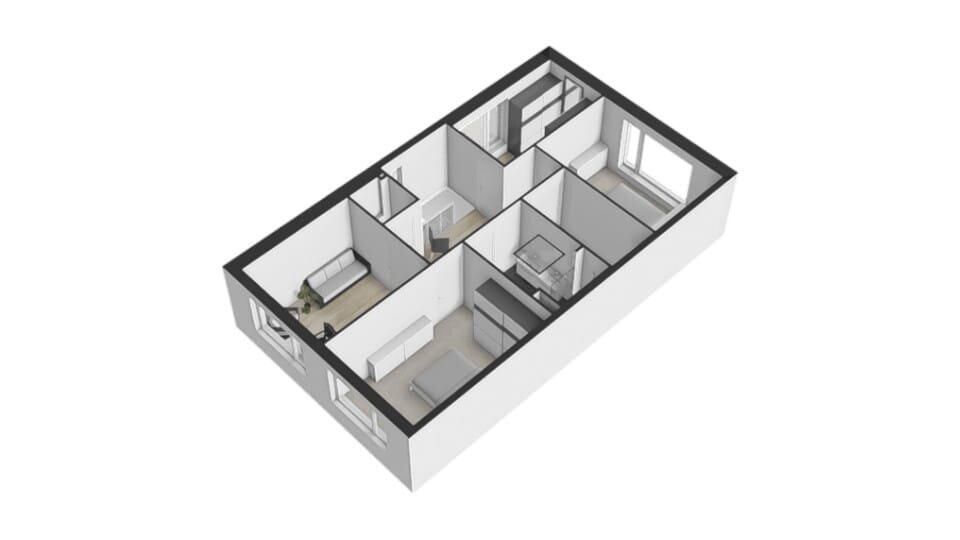 De gehele woning is strak afgewerkt met gestucte wanden en plafonds en voorzien van comfortabele vloerverwarming.